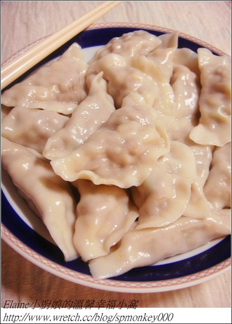 4.起一鍋熱滾水,將作法3.包好的水餃,入滾水中煮熟,起鍋前在水中滴幾滴油,以防水餃沾黏,即可。