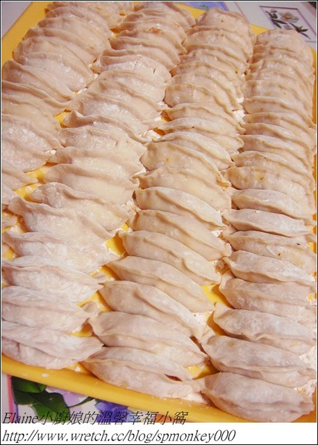 3.接著將作法2.拌好的內餡包入水餃皮中。