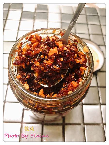 這和我們台灣的沙茶醬有點相似吔!打開瓶蓋時,味道撲鼻而來,Elaine忍不住的想品嚐它的味道了。